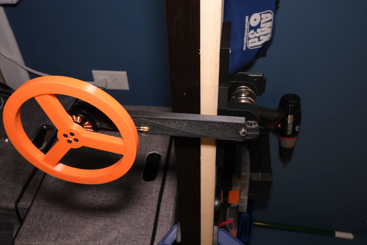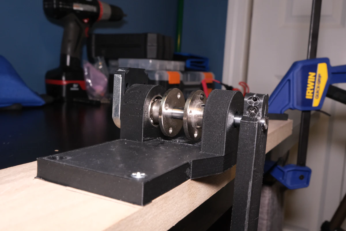 I used a snap-fit to combine the flywheel and its support together. This was so I could print the ring at 100% infill and the support at 20% infill to squeeze out a little more moment of inertia for the flywheel.