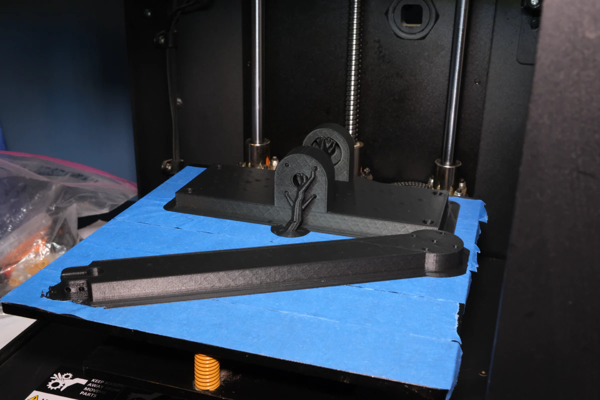 I’ve designed a decent number of things in CAD, but what made a massive difference while I was designing was having a ruler in front of me. I wasn’t working under many constraints, other than the size of my print bed and the screw locations of the encoders and motors. I found it difficult to decide what arbitrary lengths to use, so I used my ruler to get a feel for what was right.